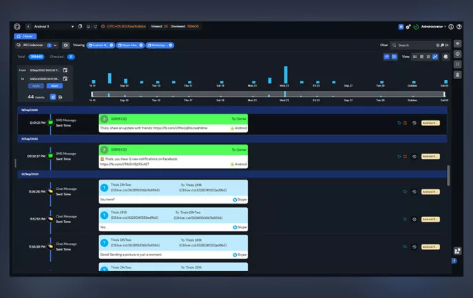 Використовуйте потужний процесор FTK для аналізу комп’ютерних та мобільних даних в єдиній базі даних, щоб знаходити зв’язки між різними джерелами даних. Переглядайте повідомлення чату з таких програм, як Twitter та WhatsApp, реконструйовані в майже власному вигляді, щоб швидко інтерпретувати розмову.